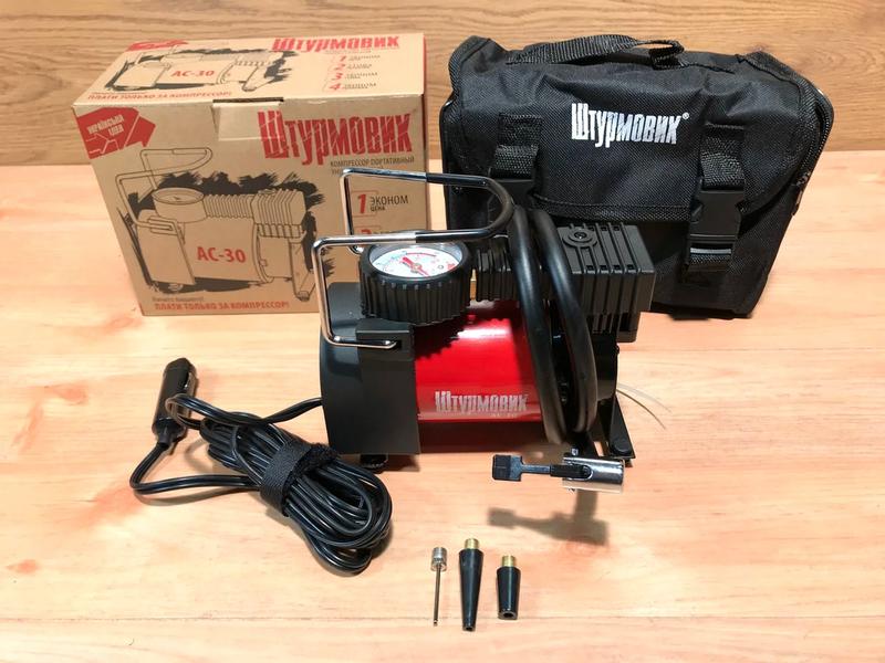 Компрессор воздушный для шин, Компрессор воздушный для покраски авто (37л/ 150psi/ 14Amp), NST Компрессор автомобильный Штурмовик разработан профессионалами автомобильного рынка специально для украинских покупателей. Линейка компрессоров Штурмовик - это возможность для покупателя платить только за качественный товар внутри, а не за упаковку. Эти идеи были воплощены в компрессоре Штурмовик. Под металлическим корпусом скрыт электродвигатель поршневого типа с производительностью 35л/мин и мощностью 150Вт, потребляющий 12А постоянного 12В тока от разъема прикуривателя в автомобиле. Качественные комплектующие позволяют за 2-3 минуты накачать колесо вашего автомобиля и сохраняют производительность даже при высоком стартовом давлении накачиваемого колеса. Модель является одной из самых популярных моделей в линейке за счет небольших размеров, мощного двигателя и подключения к разъему прикуривателя. Рекомендована для колес автомобиля с радиусом R13-15. Технические характеристики: - Напряжение: 12В - Мах потребляемый ток: 12А - Max давление: 100psi (7 Атм) - Производительность: 37 л/мин - Подключение: гнездо прикуривателя - Мощность: 150Вт Комплектация: - компрессор - сумка для хранения - инструкция с гарантийным талоном - комплект адаптеров. Гарантийный срок-24 месяца.