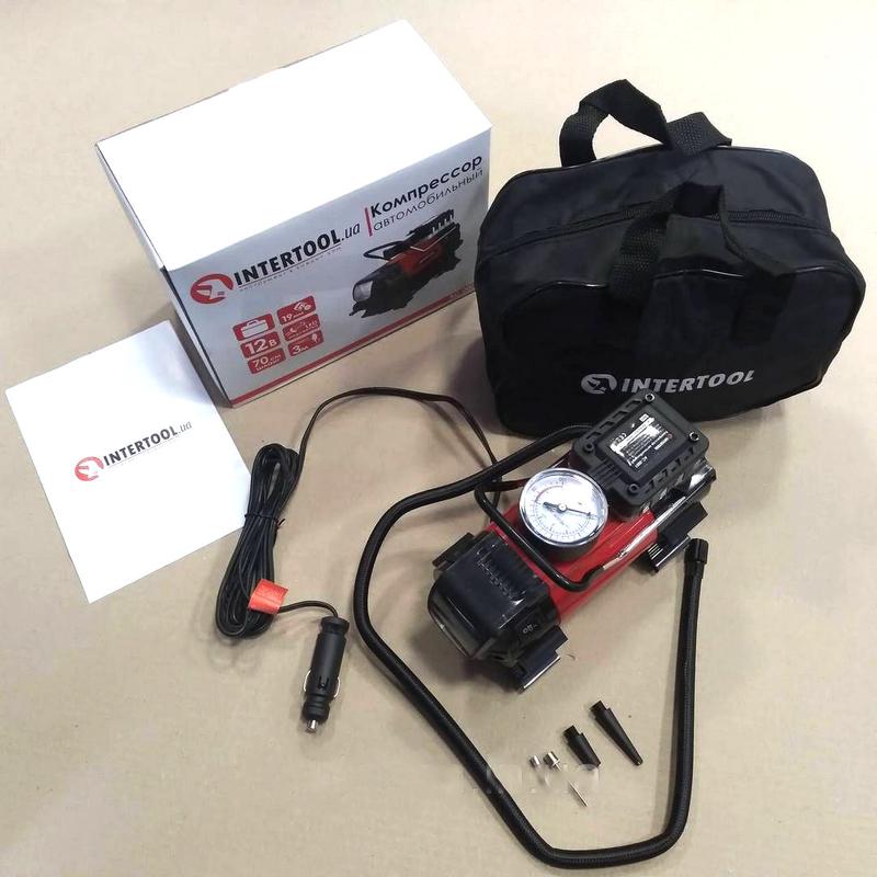 Автоматический насос для машины (20л/мин) INTERTOOL, Автомобильные компрессоры для подкачки шин, NST Назначение Оптимальный показатель давления в шинах - обязательное условие безопасности в дороге и долговечной эксплуатации шин. Автомобильный компрессор INTERTOOL способен накачать за считанные минуты колесо вашего авто до необходимого давления. Поскольку правильный показатель давления помогает продлить срок службы шин, уменьшает расход горючего и в целом улучшает езду. Производительность Максимальное давление 7 бар, скорость нагнетания воздуха 20 л/мин на выходе, что позволяет эффективно выполнять различные задачи. Например, накачать колесо R13 до 2 бар компрессор сможет за 3-4 минуты. Универсальность Помимо прочего, рабочие показатели компрессора позволяют накачать до рабочего состояния колеса мотоциклов или велосипеда, а также мячи, матрацы, круги и любые другие надувные изделия, в том числе благодаря набору насадок, который поставляется в комплекте. Мобильный и удобный Компрессор очень скромных габаритов, поэтому вместе с комплектом и сумкой поместиться даже в самых компактных багажниках. Питание осуществляется от прикуривателя автомобиля 12В, поэтому вы сможете легко накачать колесо в дороге. Длина кабеля 3 метра. Встроенный LED-фонарь поможет комфортно накачать колесо даже в темное время суток. Общие рекомендации 1) Прежде чем включить компрессор лучше завести двигатель, так вы не разрядите аккумулятор. 2) Контролируйте давление накачки по манометру, общий стандарт для автомобильных шин 2 - 2,5 атм. 3) Давайте компрессору остыть, время непрерывной работы не должно превышать 5-10 минут.