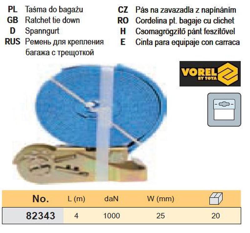 Ремінь ремінь кріплення багажу тріщатка 1000dan 25мм х 4м vorel-82343