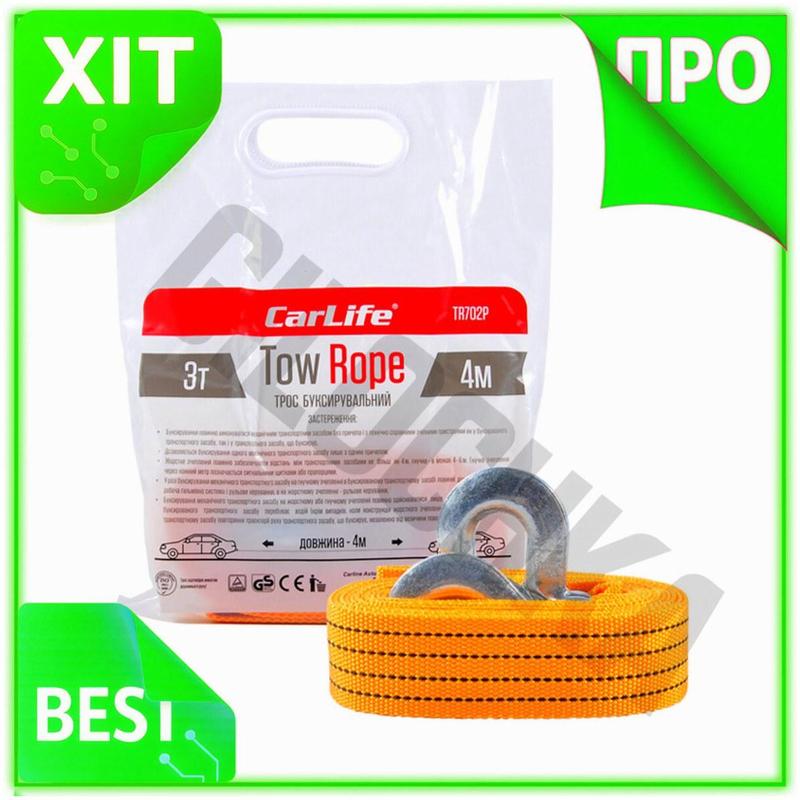 Ve буксировочный трос carlife 3т new version 4м желтый трос для буксировки автомобиля лент...