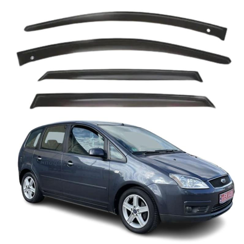 Дефлекторы окон (Ветровики) Ford C-Max I 2003-2010 (Скотч) Автомобильные дефлекторы боковых окон Дефлектор - это специальный аксессуар, который устанавливается на окна, капот автомобиля. Он отсекает встречный ветер, чем улучшает аэродинамику при движении машины. Ветровики или мухобойки, так в народе называют дефлекторы, изменяют траекторию движения воздушных потоков и защищают авто от механических повреждений. Усовершенствуйте ваш автомобиль с помощью дефлекторов боковых окон. Они позволяют вам наслаждаться свежим воздухом независимо от погоды, не пропуская шум ветра и дождя, и даже позволяют парковаться с приоткрытыми окнами, чтобы летом было прохладнее. Являются спасением для курильщиков в холодную погоду. Боковой дефлектор должен также иметь стильный дизайн, чтобы добавить эстетическую ценность вашему автомобилю. Ветровики это полезный аксессуар, щей дополнительно тюнингует автомобиль. Дефлекторы окон необходимы, если: - В дождь запотевает лобовое стекло, и необходимо открыть окно; - Хочется свежего воздуха в салоне, но так чтобы без сквозняков; - Чтобы открывая окно в непогоду, дождь и снег не попадали в салон; Качество ветровиков будет зависеть от материала из которого они изготовлены, и качества элементов крепления. Существует два вида монтажа: накладные (на двухсторонний скотч) или вставные (монтируются в паз, в который входит стекло).