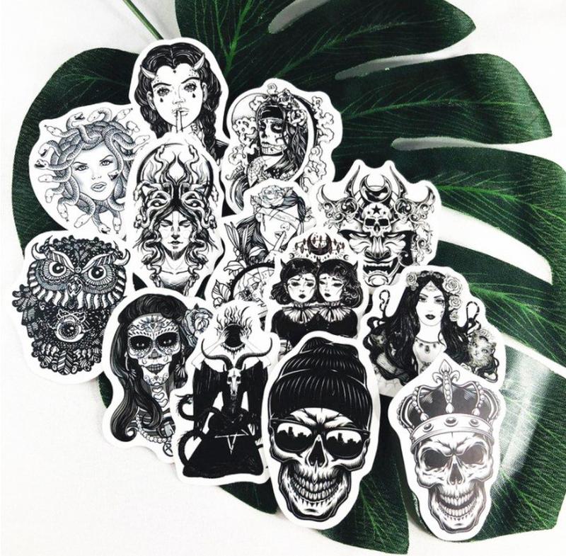 Набір вінілових наклейок стикерів стикерпак чорно-білі gothic готика з черепами стикербомб...