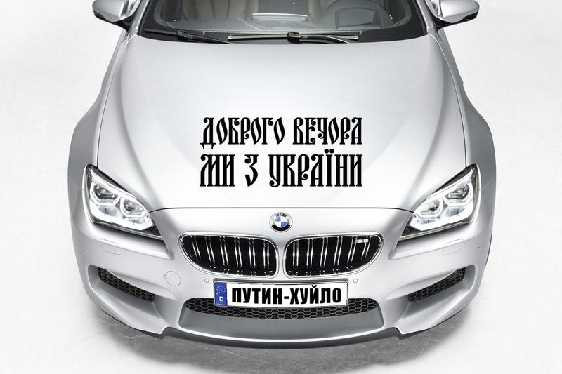 Наклейка на капот "доброго вечора ми з україни " размер 30х50см любая наклейка, надпись по...