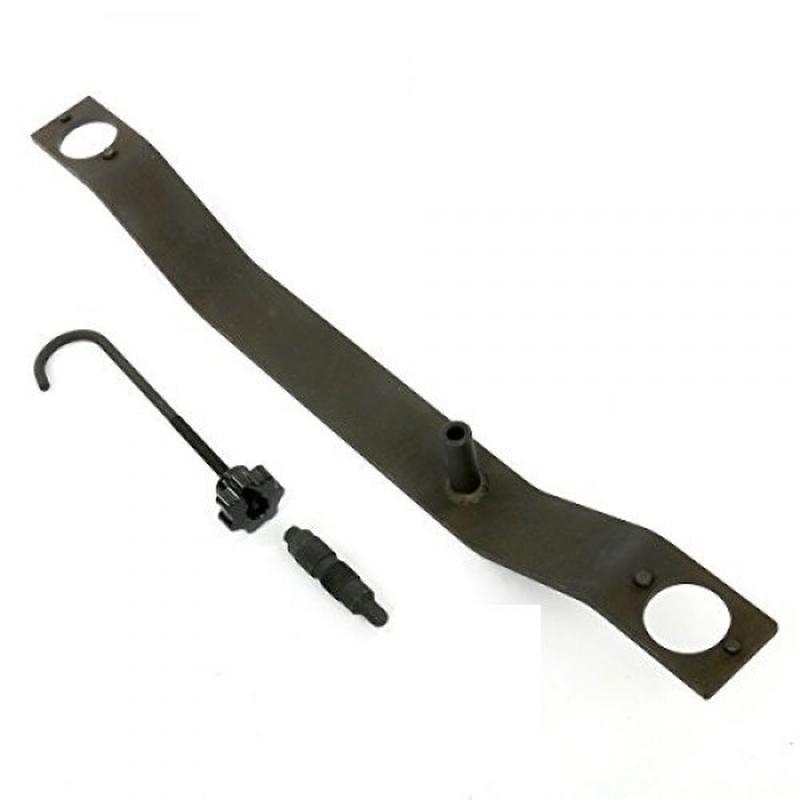 Фіксатор валів ГРМ AUDI 2.6/2.8 V6 2V REWOLT T1232VAG — набір інструментів для блокування розподільних валів для автомобілів Audi з 12-клапанним бензиновим двигуном V6 2,6/2,8 л із ремінним приводом. Містить у собі всі інструменти, необхідні для фіксації розподільного вала в правильному положенні під час регулювання або заміни ременя. Модели : Audi – 80 (1991-2002) – 100 (1991-2000) – А4 (1991-2000) — А8 (1991-2000), А8 кабріолет (1991-2000), А8 купе (1991-2000) Код двигуна : - 2.6 - АВС - 2.8 - ААH До комплекту входить: - тримач розподільного вала з гачком — 1 шт. - фіксатор – 1 шт. - 18 мм стопорний штифт – 1 шт. OEM : 1. 3243 Тип палива : Бензин Загальна довжина : 590 мм . Міжцентрова відстань : 520 мм .