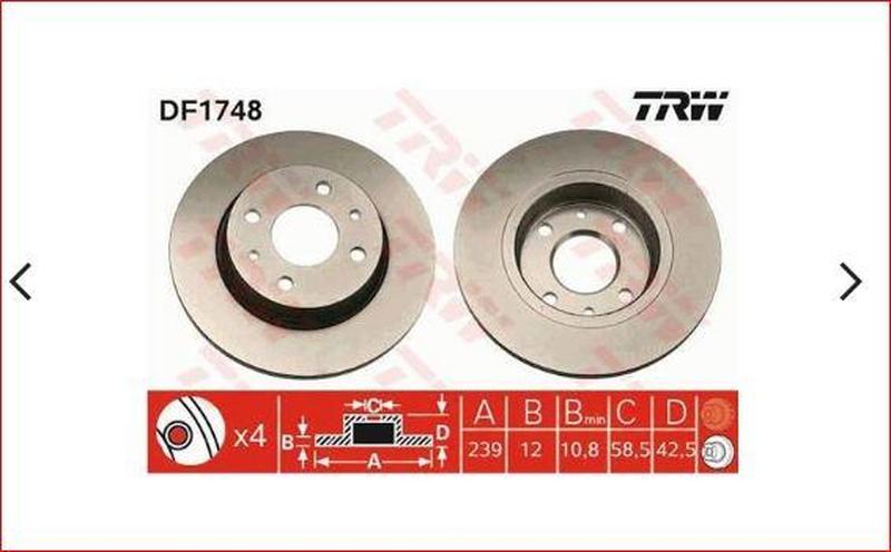 Диск гальмівний ваз 2108, 2109, 21099, 2113, 2114, 2115) trw df1748