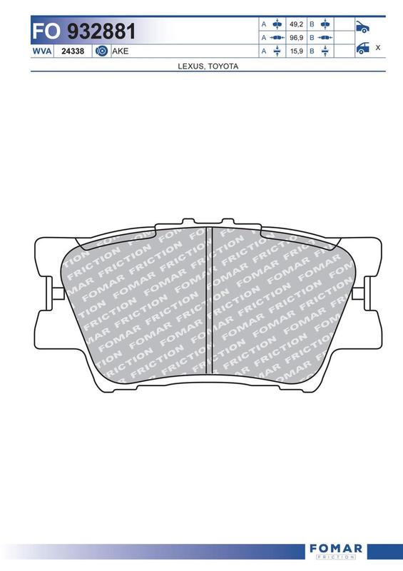 Колодки тормозные дисковые задн toyota camry ліфтбек (_v5_) 2.5 2011.09- fo 932881