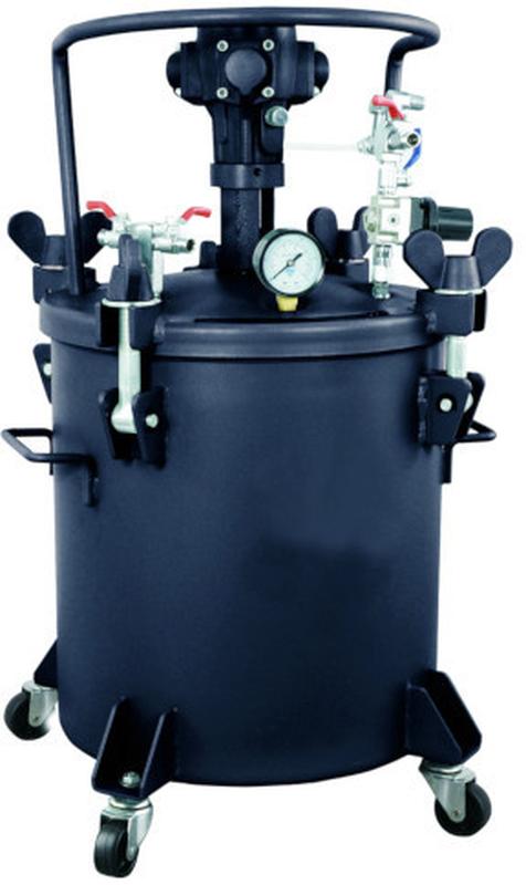 Фарбований бак з автоматичною завагою 20 л AEROPRO RP8363A Материал бачка: металевий Об'єм бачка: 20 л Робочий тиск: 1.4-2.4 бар Вхід повітря: 1/4" Вхід фарби: 3/8" Розмір: 350x324x645 мм