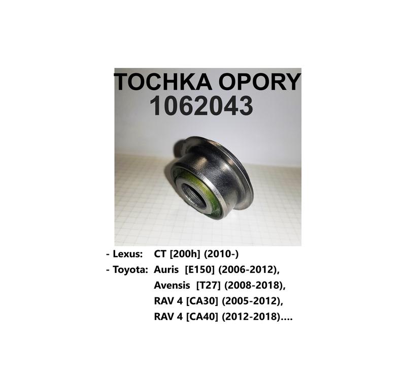 Тип: Сайлентблоки Кілька примірників у наявності Точка Опори 1062043 (518-543) / 1-06-2043 Точка Опоры сайлентблок заднего продольного рычага задний Применяемость для : Lexus: HS (ANF10) (USA) , CT (USA) , CT (ZWA10) Lexus CT200h, ZWA10 Lexus ES300, MCV10, VCV10 Lexus HS250h, ANF10 Scion iM, ZRE186 Scion tC, AGT20 Toyota Auris, ADE157, NRE185, NRE185H, NZE154, NZE154H, NZE184, NZE184H, ZRE154, ZRE154H, ZRE186, ZRE186H, ZWE186, ZWE186H Toyota Avalon, MCX10 Toyota Avensis, ADT270, ADT271, AZT270, ZRT270, ZRT271, ZRT272, ZRT272W Toyota Blade, AZE154, AZE154H, AZE156, AZE156H, GRE156, GRE156H Toyota Camry, MCV10, SV25, SXV10, SXV11, VCV10 Toyota Celica, ST165, ST185, ST205 Toyota Corolla Ceres, AE101 Toyota Corolla Levin, AE101, AE111 Toyota Corolla Rumion, ZRE154, ZRE154N Toyota Corolla, AE101, AE101G, AE111, AE112, CDE110, ZWE186, ZZE111, ZZE112 Toyota Harrier, AVU65, AVU65W, ZSU60, ZSU60W, ZSU65, ZSU65W Toyota Mark X Zio, ANA10, ANA15, GGA10 Toyota Mark X, ANA10, ANA15, GGA10 Toyota RAV4, ALA41, AVA42, AVA44, WWA42 Toyota Sai, AZK10 Toyota Scepter, SXV10, SXV15, SXV15W, VCV10, VCV15, VCV15W Toyota Sienna, MCL10 Toyota Sprinter Marino, AE101 Toyota Sprinter Trueno, AE101, AE111 Toyota Sprinter, AE111 Toyota Vista, SV25 Toyota Windom, VCV10, VCV11 Toyota RAV4, ACA30, ACA31, ACA31W, ACA33, ACA36, ACA36W, ACA38, ALA30, ALA35, ALA40, ALA49, ASA33, ASA38, ASA42, ASA42W, ASA44, GSA33, GSA38, QEA38, ZSA30, ZSA35, ZSA42, ZSA44 Toyota Vanguard, ACA31, ACA33, ACA33W, ACA36, ACA38, ACA38W, GSA33, GSA33W В наличии 2 шт ,Цена указана за Одну единицу товара. Товар в Одессе.