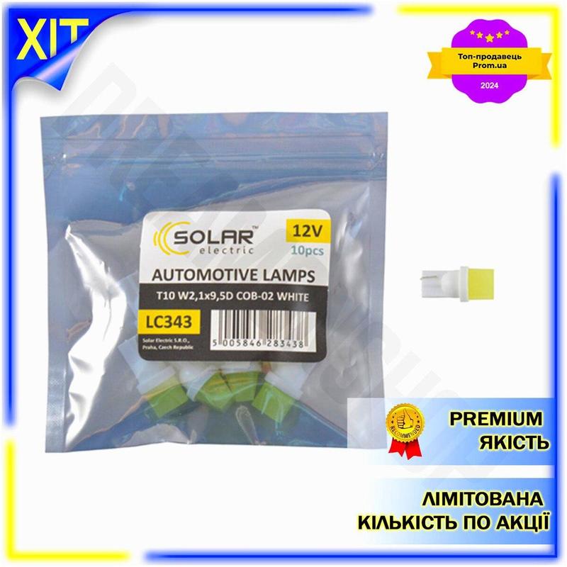 Dm led автолампа solar специфікація 2.2 t10 12v w2.1x9.5d біла для заміни штатного освітле...