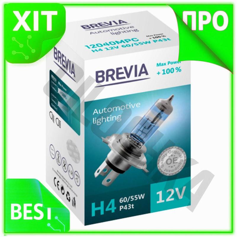 Ve галогенова лампа brevia h4 new version 12v 60/55w p43t для головного світла автомобіля...