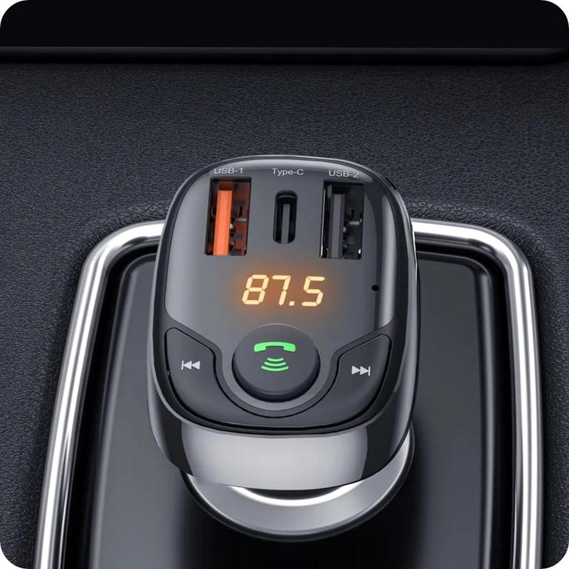 Модулятор в машину, Фм модуляторы Baseus, Модулятор для автомобиля, Фм трансмиттер, NST Bluetooth FM-трансмиттер от Baseus используется для передачи звука с мобильных устройств на автомобильные колонки с помощью радиоволн. Таким образом, даже старая магнитола (без Bluetooth, MP3 или AUX или даже кассетник) может работать как современный музыкальный плеер или служить гарнитурой во время вождения. Особенностью данной модели является дополнительная функция зарядки мощностью до 28 Вт. Преимущества продукта: Аксессуар позволяет воспроизводить аудио на колонках с портативных флешек беспроводным путем. Благодаря трансмиттеру вы сможете комфортно слушать музыку из таких мобильных приложений как OpenFM, Spotify, YouTube. Модель оснащена светодиодным дисплеем, который используется для установки частоты и мониторинга наполненности аккумулятора. Зарядное устройство оснащено портами USB-A и USB-C мощностью до 28 Вт и подходит для большинства версий гнезд прикуривателя. Характеристики: - Входное напряжение: 12-24В. - Выходное напряжение USB-A1: 4,5 В/5 А, 5 В/4,5 А, 9 В/3 А, 12 В/2,4 А. - Выходное напряжение USB-A2: 5В/1,5А. - Выходное напряжение USB-C: 5 В/3 А, 9 В/3 А, 12 В/2,4 А. - Версия Bluetooth: 5.0. - Диапазон работы FM-трансмиттера: до 5 метров. - Радиус действия передатчика по Bluetooth: до 10 метров. - Частотный диапазон FM: 87.5-108.0МГц. - Поддержка USB-накопителей: до 32 ГБ. - Чтение аудиоформатов: MP3/WAV/FLAC/APE/WMA. - Совместимость с iOS, Android.