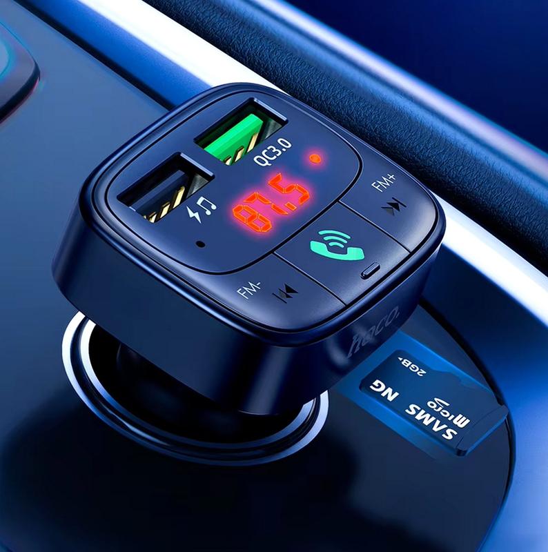 Блютуз-модулятор для автомобіля Hoco, Андроїд фм модулятор блютуз, Блютуз адаптер у прикурювач, NST FM-модулятор — це недорогий багатофункціональний пристрій для прослуховування музики у вашому автомобілі, а також зручна телефонна гарнітура (hands-free), зокрема модульатор стане зарядкою для Вашого смартфона. Основне завдання ґаджета — відтворення музичних треків, відповідати на дзвінки та заряджання телефонів. FM-модулятор CAR дає змогу одночасно прослуховувати музику, заряджати 2 смартфони та відповідати на виклики, не відвертаючи уваги від водіння. Особливості: - Підтримка Bluetooth/FM/SD-карти - Підтримка швидкого заряджання QC3.0 - Пристрій компактний і зручний у використанні - LED-дисплей із виведенням параметрів напруги та сили струму - Завдяки 2 USB-портам Ви зможете заряджати одночасно 2 пристрої - Якісні матеріали забезпечать тривалий термін експлуатації - Пристрій має вогнетривкий корпус - Захист від короткого замикання, перепадів напруги, перегрівання - Сильний сигнал - Передавання музики без втрат - Швидкий смарт заряджання Характеристики: - Версія Bluetooth: 5.0 - Підтримка: USB-флешнакопичувач < 32Gb - Аудіоформат: MP3 / WMA / WAV - Дальність передавання Bluetooth/FM: до 10 метрів/ до 5 метрів - Вихід USB-A 1: 5V / 3.1A - Вихід USB-A 2 (QC3.0) : 5V / 3.1A - Загальний вихід двох USB-A: 5V / 3.0A 9V/2A 12/1.5A 18W (Max) - Джерело живлення: Роз'єм прикурювача - Матеріали: пластик + алюмінієвий сплав - Кількість USB-портів: 2 - Розмір продукту: 67 * 42 * 36 мм - Вага: 30 г