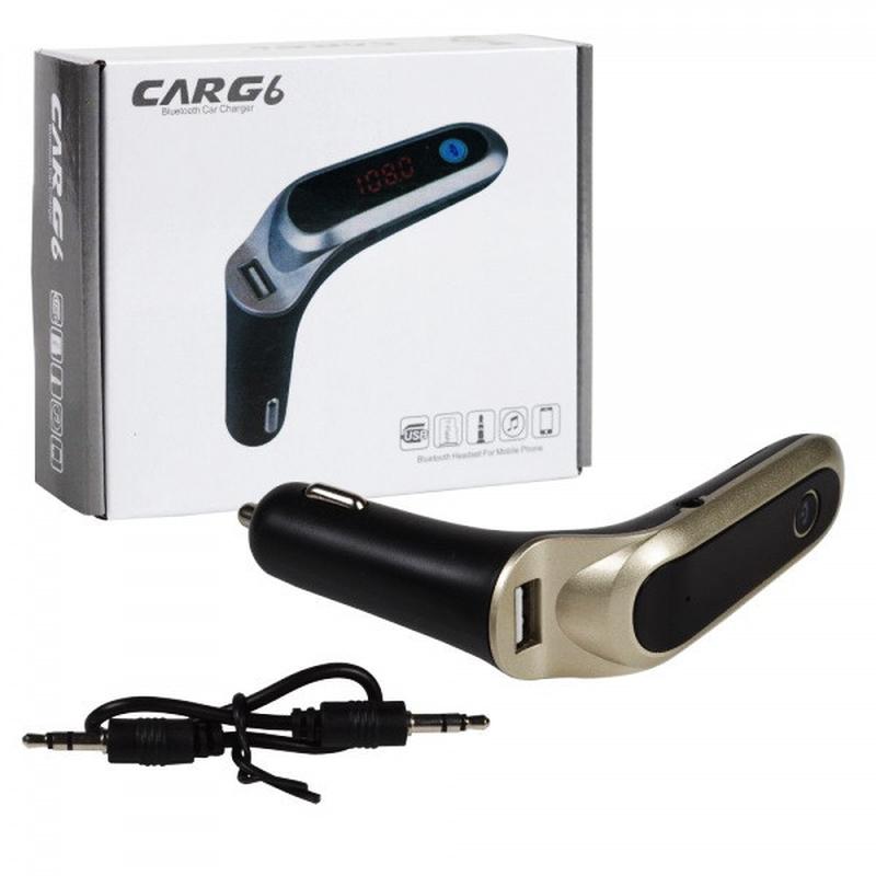 FM-трансмітер FM Mod G6 FM-трансмітер FM Mod G6 — це універсальний пристрій, який дає змогу відтворювати аудіофайли з різних цифрових носіїв через FM-приймач автомобіля. Прекрасний вибір для тих, хто хоче слухати музику з телефона або USB-накопичувача, не змінюючи стару магнітолу. Пристрій приєднується до прикурювачеві автомобіля, підтримує безліч інтерфейсів і має вбудований мікрофон для відповіді на дзвінки. Переваги: - Підтримка карт пам'яті microSD, USB, AUX. - Можливість заряджання мобільних пристроїв через USB-порт. - Інтеграція Bluetooth для бездротового передавання музики та здійснення дзвінків. - Компактний дизайн і LED-дисплей, що зображає частоту радіостанції або трек. Характеристики: - Екран: LED дисплей. - Діапазон FM-частот: 87,5 – 108 МГц. - Підтримка форматів: MP3, WMA. - Живлення: від прикурювача (12-24 В). - Інтерфейси: USB, microSD, AUX, mini jack 3.5 мм. Комплектація - FM-трансмітер - Кабель AUX