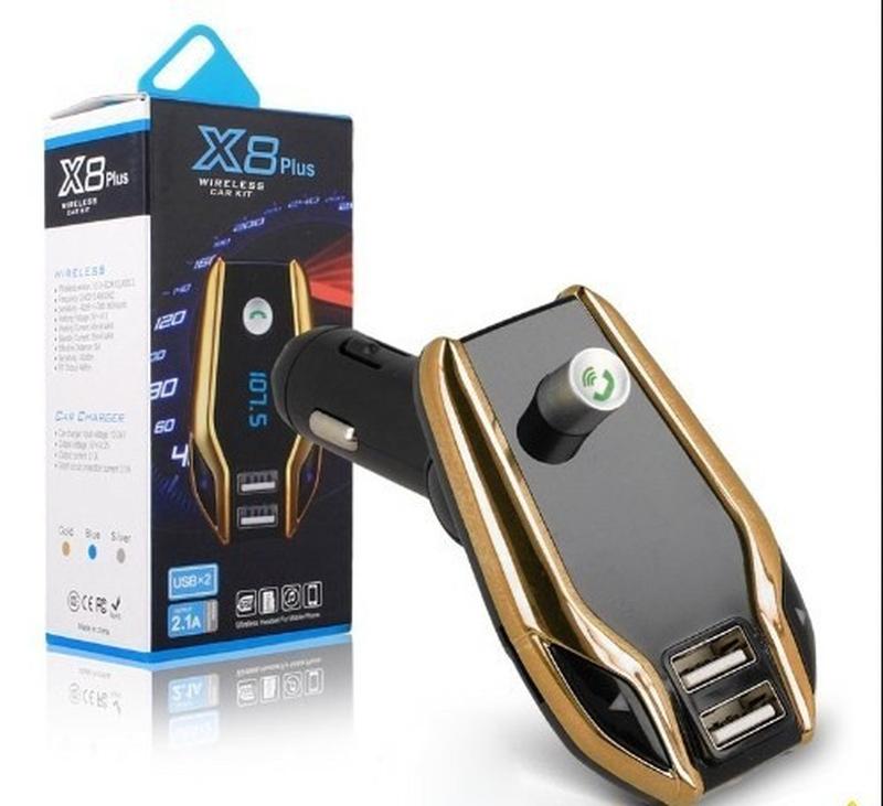 Fm-модулятор x8 plus bluetooth 2 usb aux трансмітер