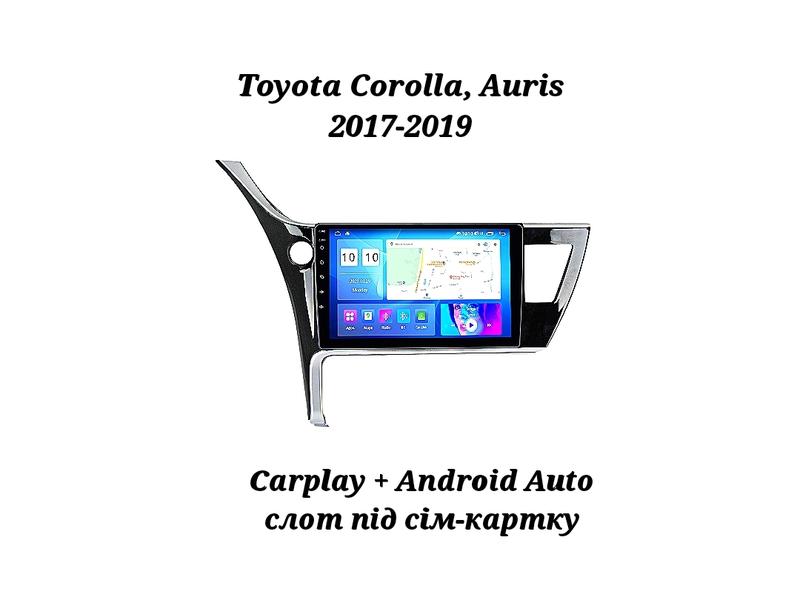 Магнітола android toyota corolla, auris 2017-2019, 6/128, 8 ядер, carplay, слот під сім-ка...