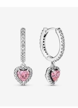 Срібні сережки кульчики пусети з пробою s925 нові з біркою у стилі пандора pandora рожеве серце