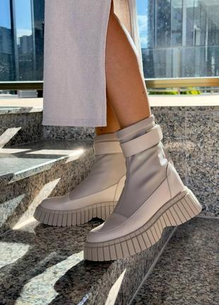 Жіночі бежеві короткі шкіряні черевики демісезонні