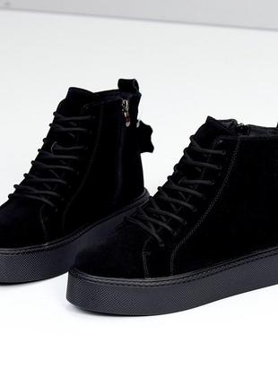 Ботинки замш, женские черные