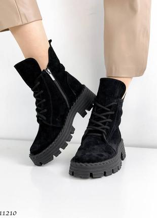 Черевики зимові зима на тракторній підошві танкетці платформі натуральна шкіра