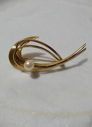 Брошь 👑 винтаж 💎металлическая под жемчуг жемчужина брошка