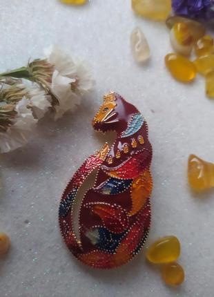 Брошь брошка значок пин кот кошка гибкая прогнулась 4.3 см металл красная эмаль
