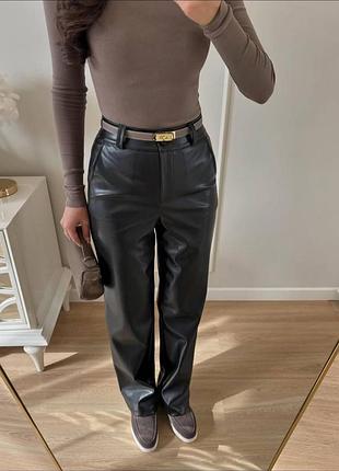 Прямі шкіряні штани жіночі