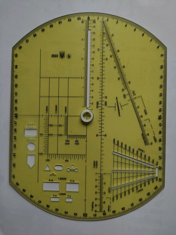 Кілька примірників у наявності Артилерійський круг АК-4, виготовлений із тонкого гнучкого пластику, шкала тисячних 6400 поділок за НАТівською мірою кутів