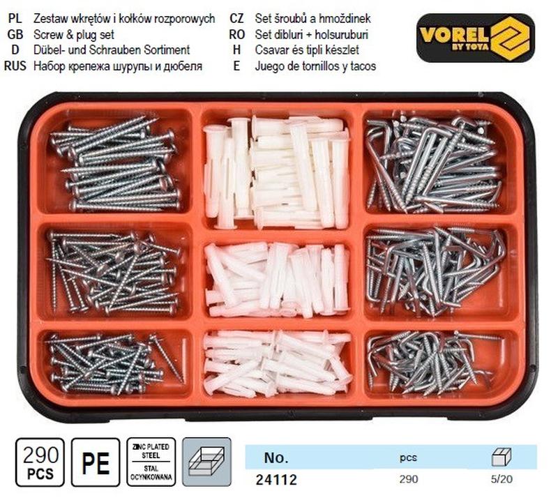 Набір шурупи гачки з різьбою дюбелі 290 штук vorel-24112