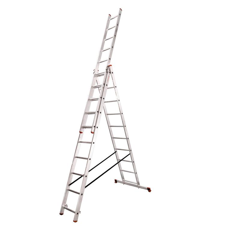 Трьохсекційна алюмінієва драбина ********* FLEXIREACH — максимум гнучкості, мінімум компромісів FLEXIREACH — це професійна серія драбин *********, створена для тих, хто звик довіряти надійним речам. Міцна, зручна і функціональна, ця модель підлаштовується під будь-яке завдання. Переставна третя секція дозволяє працювати в трьох режимах: приставному, у вигляді драбини та з вильотом. Все — одним рухом. - Алюмінієва конструкція — легка, стійка, не боїться вологи - Рифлені щаблі з профілю — безпечна опора навіть на висоті - Переставна третя секція — легко дістати ще вище - Червона фурнітура — акцент на безпеку та фірмовий стиль Для фасадних робіт, монтажу покрівель, обслуговування висотних об'єктів — FLEXIREACH підлаштовується під вашу мету. ********* FLEXIREACH — розумно вгору.