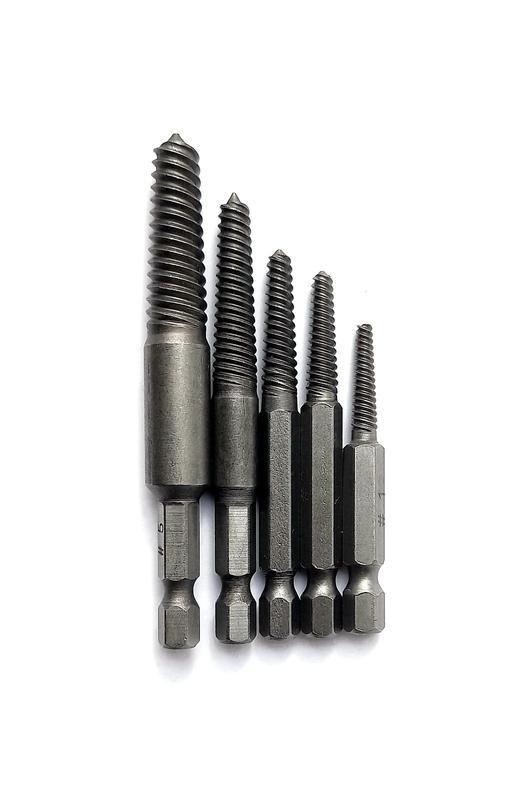 Набір біт екстракторів Набір біт екстракторів для зламаних гвинтів і шурупів 5 шт. Набор містить 5 біт різного діаметру, здатні викрутити застряглі гайки, болти або саморезы, іржаві, зламані гвинти. Цей набір біт можна використати з різними дрилями і шуруповертами. Матеріал: підшипникова сталь Колір: сірий Кількість: 5 шт. Комплектація: 5 х екстракторів(хвостовик: шестигранний) Відповідний діаметр: #1: підходить для 5 ~ 7 мм #2: підходить для 6 ~ 8 мм #3: підходить для 8 ~ 11 мм #4: Бажане 11 ~ 14 мм #5: Бажане 14 ~ 18 мм