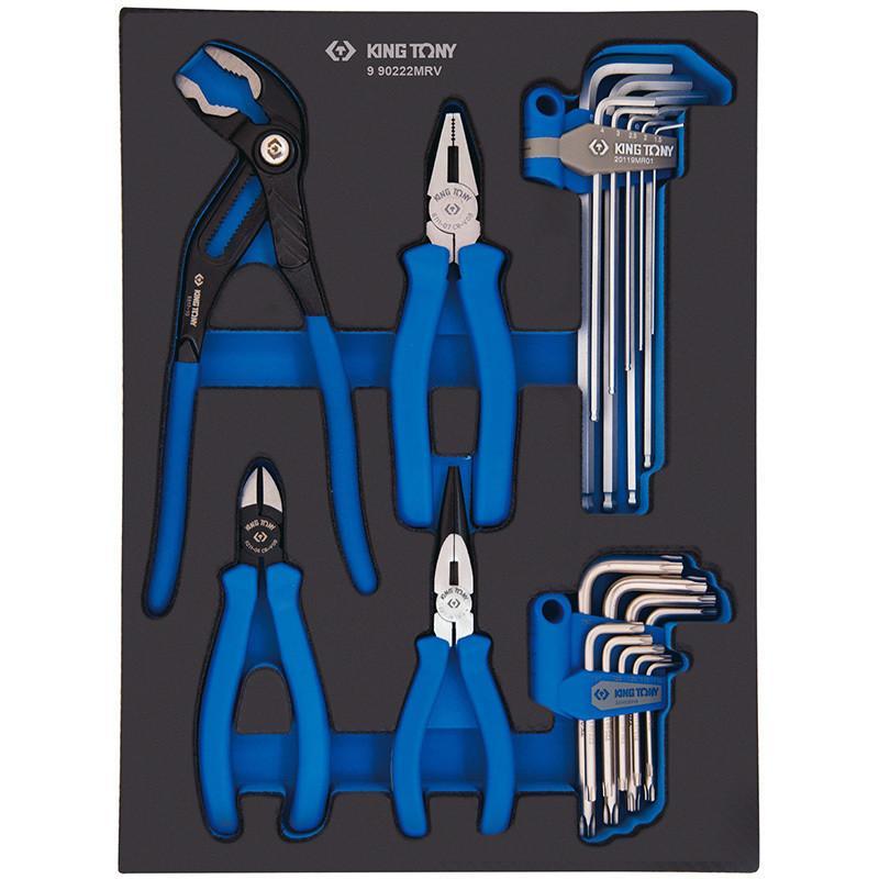 Виробник: King Tony Вид комплектуючих: Набори Кілька примірників у наявності Набір пасатижів, шестигранників і TORX Г-подібних, ложемент, 22 предмети Ключі Г-подібні Набір Г-подібних шестигранників із кульовим закінченням 20119MR01 H1.5, H2, H2.5, H3, H4, H5, H6, H8, H10 Набір Г-подібних ключів TORX з отвором 20409PR Т10H, Т15H, Т20H, Т25H, Т27H, Т30H, Т40H, Т45H, Т50H Шарнірно-губцевий інструмент Захоплення переставний 6517-10C 250 мм Пасатижі комбіновані 6111-07 180 мм Пасатижі тонконосі 6311-06 160 мм Бокорізи 6211-06 180 мм Матеріали: сталь Cr-V, сталь SNCM-V, PP+TPR, вініл, EVA (ложемент) Розмір ложементу: 280 х 375 мм Вага: 1,9 кг Призначення Роботи з монтажу та демонтажу кріпильних вузлів різних виробів, пристроїв і агрегатів. Виробник: King Tony Країна виробник: Тайвань Гарантійний термін: 6 міс Кількість в наборі інструментів: 22 Набір ручного інструменту: набір автомобільного інструменту Стан: Новий Тип: Набір ручного інструменту Тип упаковки: Ложемент