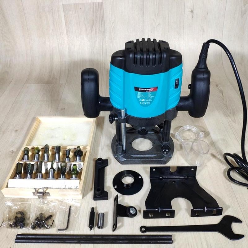 Фрезер кромковий для дерева + Набір фрез 2200 Вт Grand (Чехія), Фрезер для дерева для початківців, NST фрезер вирізняється бездоганним збиранням і високою зносостійкістю матеріалів. З його допомогою ви зможете фрезерувати пази та канавки, знімати фігурні контури, фаски. Серцем апарата є двигун потужністю 2200 Вт, що здійснює 26000 об./хв. Завдяки можливості регулювати кількість обертів двигуна та глибину фрезерування, експлуатація інструмента більш ніж комфортна. обладнана зручною ручкою, яка дає змогу міцно захопити прилад під час роботи. Удосконалена охолоджувальна система запобігає сильному нагріванню двигуна. Транспортувальний кейс із міцного пластику забезпечить захист інструмента від можливих пошкоджень, у період зберігання та перевезення. Характеристики: - ергономічний дизайн; - двигун потужністю 2200 Вт; - якісна збірка; - міцний корпус; - простий в експлуатації; - можливість регулювання числа обертів; - кількість обертів двигуна — 26000 об/хв; - набор фрез в комплекте. Гарантійний термін обслуговування — 12 місяців. Комплектація - фрезер, - набір фрез, - гарантійний талон, - посібник з експлуатації.