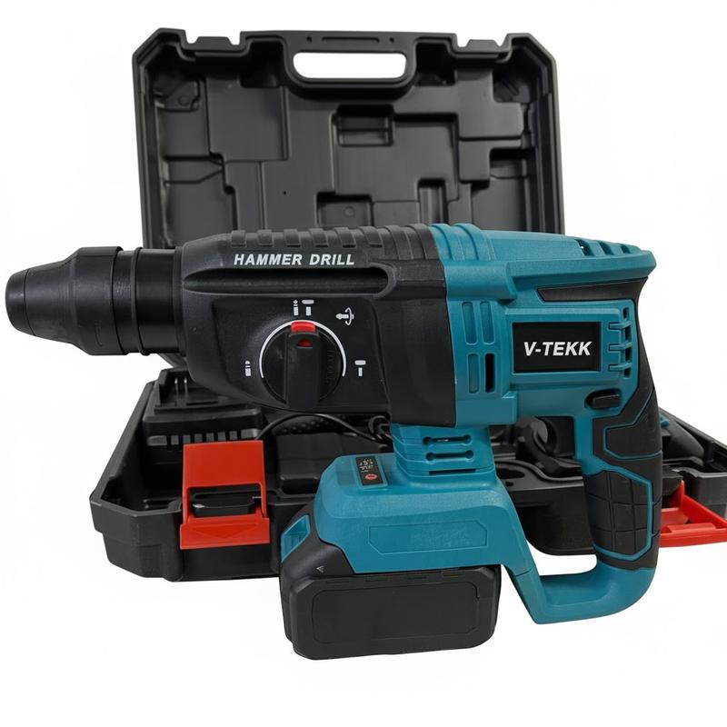 Описание Аккумуляторный дрель-перфоратор V-TEKK — мощный универсальный инструмент для сверления, закручивания и ударного бурения без подключения к сети. Идеально подходит для дома, ремонта и профессиональных задач — работает с деревом, металлом, бетоном и кирпичом. Преимущества модели V-TEKK: 2 в 1: режим сверления и ударный перфоратор. Литий-ионный аккумулятор 18 В: долгое время работы, нет «эффекта памяти». Компактный и сбалансированный корпус: удобно держать одной рукой. Беспроводная свобода: работай в любом месте — на стройке, даче, в гараже. Регулировка скорости и реверс: точное управление под любой тип материала. Прочный редуктор и металлический патрон: надёжность и долговечность. Применение: сверление бетона, кирпича, металла, дерева; монтажные и отделочные работы; установка мебели, карнизов, дюбелей; работа в труднодоступных местах без розетки. Инструмент V-TEKK — это надёжность, мобильность и мощность в одном корпусе. С ним ты всегда готов к работе — где угодно и когда угодно.
