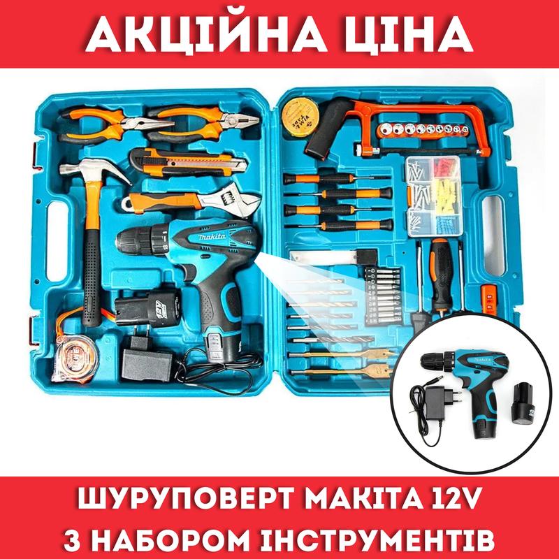Універсальний шурупокрут з акумулятором makita df330dwe 12 v 2 a/h li-ion з набором інстру...