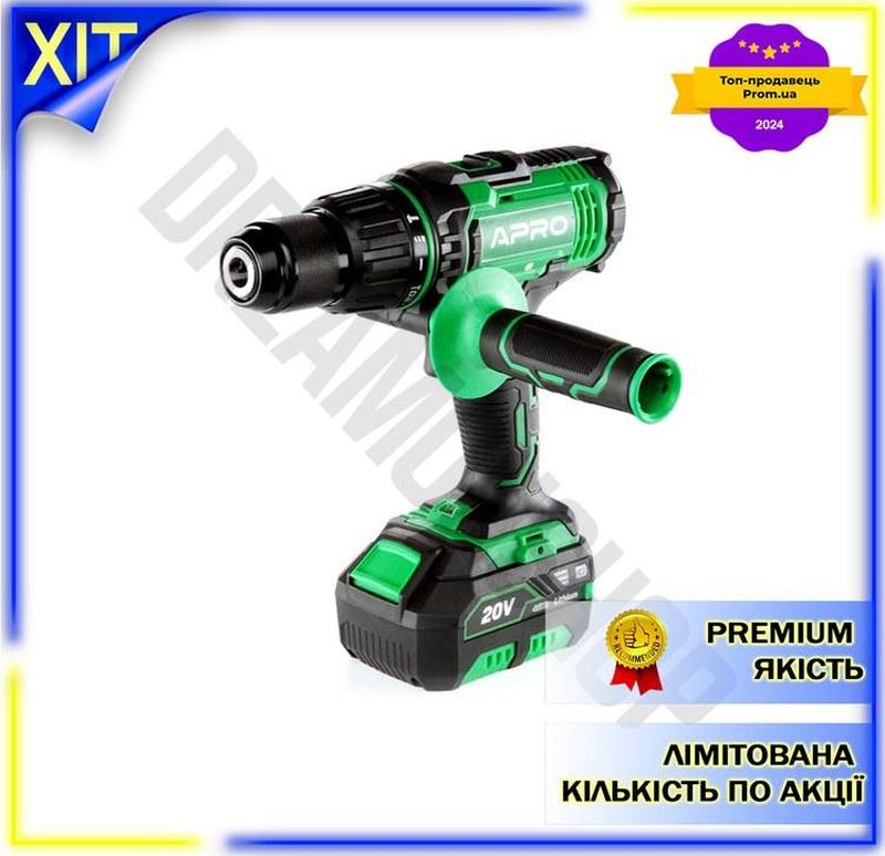 Dm акумуляторний шуруповерт apro специфікація 2.2 без акб дриль з ударним режимом для дома...