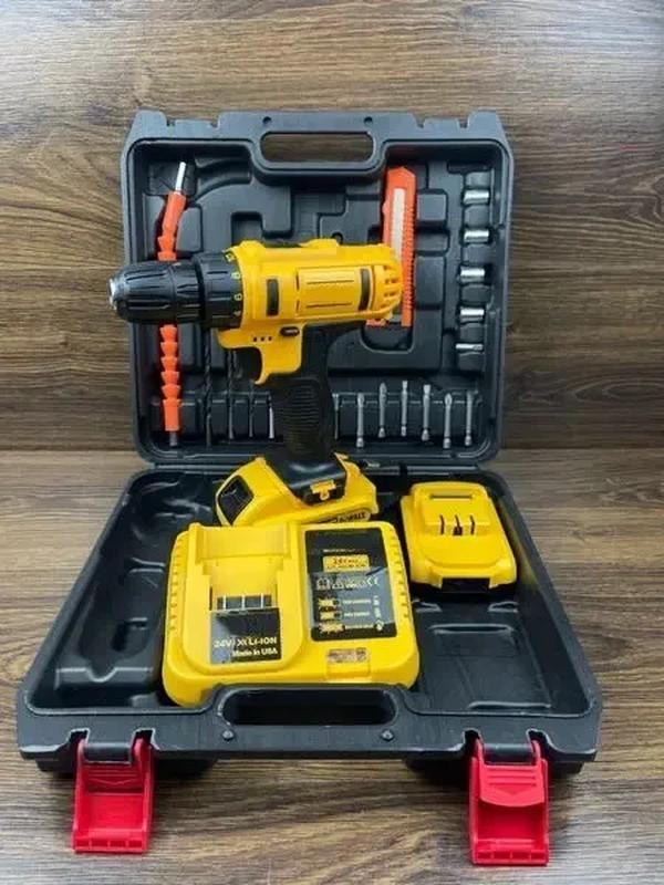 Акумуляторний шуруповерт 24v з набором інструментів у кейсі, шуруповерт