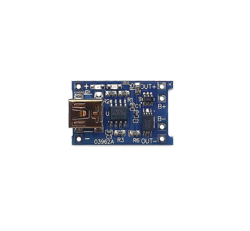 Модуль зарядки TP4056 Mini-USB с защитой Зарядная плата TP4056 Mini-USB с функцией защиты для Li-Ion батарей. Для зарядки одиночных литиевых (Li-Ion или Li-Pol) элементов с номинальным напряжением 3,7В и максимальным 4,2 В. Модуль отключает нагрузку при напряжении батареи ниже 2,5 В и если ток нагрузки превышает допустимый. По умолчанию ток заряда 1000 мА, регулируют с помощью резистора. Аккумулятор подключается к контактам B + / B - Нагрузка - к контактам OUT + / OUT - Характеристики: • Входной интерфейс: Mini-USB • Метод заряда: CC-CV/линейная зарядка • Максимальный ток зарядки: 1000 мA регулируется (подбором резистора) • Точность зарядки: 1,5% • Входное напряжение: 5В (4,5-5,5) • Полная зарядка напряжения: 4.2 В ± 1% • Светодиодный индикатор: красный - заряжается, зеленый - заряжен • Температура окружающей среды: от -10°C до +85°С • Защита от обратной полярности: нет • Защита от перенапряжения: 2,5 В • Защита от перегрузки по току ток: 3A