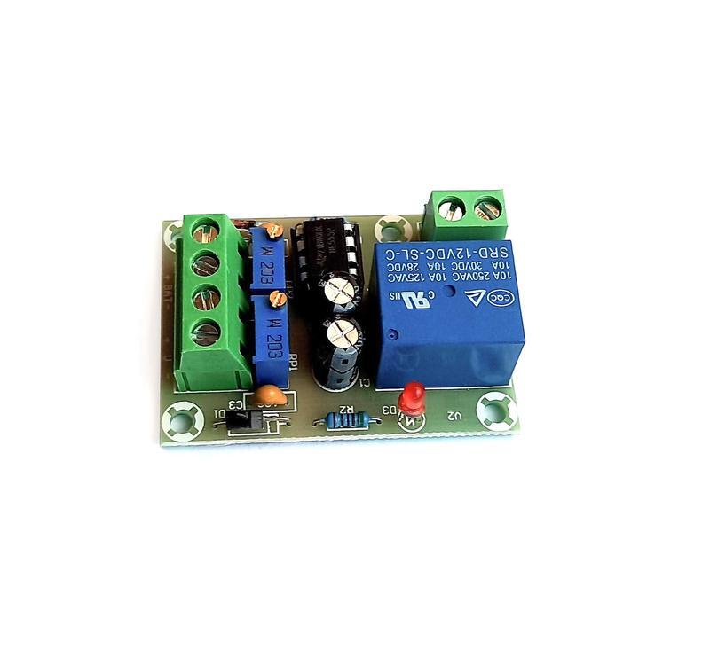XH-M601 модуль контролю заряду 12 В АКБ Модуль (XH-M601) контролю заряду 12 В АКБ. Спрацьовування реле відбувається у разі досягнення порогових значень напруги на клемах АКБ, встановлюваних підстроєними опорами. Технічні характеристики XH-M601: - Напруга увімкнення реле: 10,5 В (регулюється) - Напруга вимкнення реле: 14,8 В (регулюється) - Нижній поріг (заводські установки): 12,4 В - Верхній поріг (заводські установки): 14,8 В - Похибка встановлення: ±0. 1 В - Струм споживання в режимі вимкнення реле: не більш ніж 12 мА - Індикаторний світлодіод — вмикання реле. - Живлення: 13.8 - 14.8 В - Розміри: 65 x 52 x 30 мм Настроювання контролера заряду XH-M601 Для налаштування модуля знадобиться регульоване джерело живлення. Обертання за годинниковою стрілкою збільшує напругу, проти годинникової — зменшує. 1. Викручуємо проти годинникової стрілки в крайнє положення (до клацання) резистор RP1. 2. Викручуємо за годинниковою стрілкою в крайнє положення (до клацання) резистор RP2. 3. Подаємо на роз'єми Bat + мінімальна напруга, за якої модуль має увімкнути реле. Світлодіод на модулі горіти не має. 4. Крутимо резистор RP1 за годинниковою стрілкою, до моменту вмикання світлодіода на модулі. У такий спосіб настроюється нижній поріг увімкнення. 5. Подаємо на роз'єми Bat+- максимальну напругу, за якого модуль має вимкнути реле. Світлодіод на модулі має горіти. 6. Викручуємо резистор RP2 проти годинникової стрілки, до моменту вимкнення світлодіода на модулі. У такий спосіб настроюється верхній поріг вимкнення.