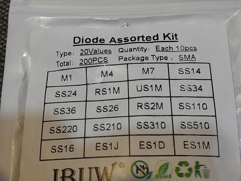 Універсальний набір випрямних діодів IBUW у корпусі SMA, призначений для ремонту, збірки та тестування електронних пристроїв. У комплект входить 20 різних типів по 10 шт кожного, що дозволяє швидко підібрати потрібний елемент для будь-якої схеми. Характеристики: Кількість: 200 шт (20 типів × 10 шт) Тип корпусу: SMA Маркування: M1, M4, M7, SS14, SS24, SS34, SS36, SS26, SS110, SS210, SS310, SS510, SS16, SS220, RS1M, US1M, RS2M, ES1J, ES1D, ES1M Робоче призначення: випрямлення змінного струму, захист ланцюгів, заміна діодів у блоках живлення, інверторах, зарядних пристроях тощо Виробник: IBUW Переваги: Зручна упаковка з маркуванням типів Висока якість і стабільність параметрів Ідеально підходить для майстрів-електронників і радіоаматорів Комплект — готове рішення для будь-яких електронних проєктів або ремонту.