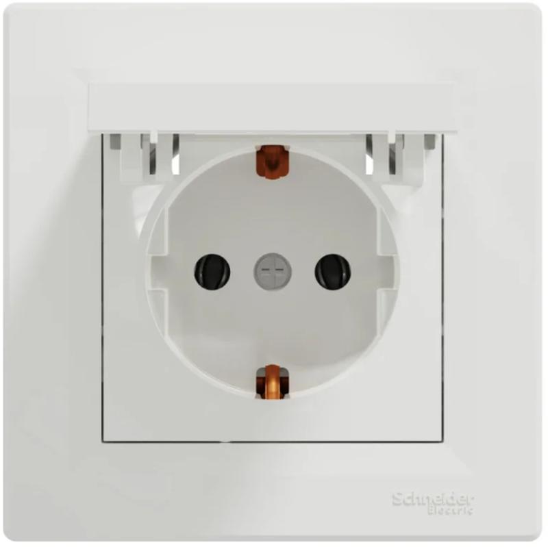 Розетка одинарна з/з та кришкою schneider asfora бiла