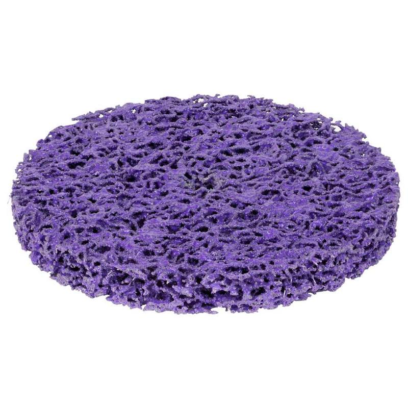 Круг зачистной из нетканого абразива (коралл) Ø125мм без держателя фиолетовый жесткий Зачистные круги из нетканого абразива - это новое поколение абразивных синтетических устойчивых к износу материалов для профессиональной высококачественной обработки поверхности. Применяют для удаления слоев краски, ржавчины, клея, герметиков или других твердых отложений, очистки сварных швов и цветов побежалости, удаления сварочной окалины, подготовки поверхности к покраске. Работают по различным материалам: нержавеющей стали, черным, цветным металлам, стекловолокну, бетону, камню, дереву и пластику. Оптимальную производительность и максимальный ресурс имеют на скоростях от 3500 до 4500 об/мин. при работе на электрических и пневматических машинках, электродрелях. Круги имеют несколько вариантов жесткостей, отличаясь цветом. Черный круг - самый мягкий и деликатный вариант. Идеален для удаления краски с алюминия, нержавейки, цветных металлов и т. д. Синий круг - универсальное решение средней жесткости. Отлично удаляет краску, ржавчину и небольшую окалину с металлических и деревянных поверхностей. Фиолетовый круг - самый жесткий и агрессивный. Снимет любую ржавчину, краску и справятся даже с толстой окалиной.