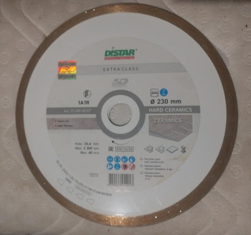 Маю два один новый, второй Б/У прорезал 20 метров. ЦІНА за два Описание: DISTAR 1A1R HARD CERAMICS Круг алмазний Distar 1A1R 350x2,2x10x32 Hard ceramics 11127048024 арт.11127048024 1A1R 350x2,2x10x32 Hard ceramics Алмазный диск DISTAR 350мм СУЦИЛЬНЫЙ 5D, керамогранит, мрамор 1A1R Hard ceramics/ 11127048024 Артикул:11127048024 ПроизводительDistar Тип:Составляющий Наружный диаметр:350 мм Толщина алмазного слоя:2,2 мм Высота алмазного слоя:10.0 мм Диаметр посадки:32 мм Для мокрой резки:да Описание: Круг алмазный Distar Hard Ceramics предназначен для высококачественной резки керамической плитки с наличием декоративного покрытия и без него, а также керамогранитов. Скорость резки в минуту составляет 1,1 метра погонных, при ресурсе в 1000 пог.м, благодаря своему ресурсу на обработку материала, достигается выгодная эксплуатация инструмента при меньших затратах. В большинстве случаев применяется для работы с рельефной глазурью, настенной и напольной керамикой, керамогранитом, а также всеми видами гранита и мрамора в редких случаях. Имеет широкую линейку диаметра диска от 115 мм до 400 мм, который используется на плиткорезах с мощностью 0,8-1,5 кВт с частотой вращения 2900 оборотов в минуту. Для диаметров 200 — 250 мм и 2 — 2.5 кВт для 300 — 400 мм. При этом необходима подача воды в количестве от 5 литров в одну минуту раб. процесса. При других показателях работоспособность существенно меняется. Hard Ceramics можно приобрести по доступной цене, для быстрой и чистой работы. Обрабатываемые материалы: Кварцит, керамическая плитка настенная, мрамор (мягкие и средние породы) Компания Distar — ведущий производитель алмазного инструмента не только в Украине, но и далеко за ее пределами. Благодаря использованию высококачественного сырья, прогрессивных технологий и новейшего оборудования в результате получается отличные инструменты, которыми любой пользователь останется доволен на все 100%. Основные характеристики Круг алмазный 1A1R RS25T 350x2.2x10x32 Hard ceramics инструмент для декоративных работ по керамике и рельефной глазурью. Благодаря очень тонкому слою алмазного напыления толщиной 2.2 мм он легко входит в материал, не оставляя сколов и повреждений. Также подойдет для резки настенной и напольной плитки, реже используется для гранита и мрамора. С помощью этого инструмента можно выполнять строительные, бытовые и косметические работы. При большом диаметре круга можно использовать для больших станков или болгарок. Основные характеристики: - подходит для мокрой резки; - большая скорость резания; - аккуратность; - долговечность. Если Вам необходимо порезать более твердые природные камни – лучше не рисковать или же обратиться к профессионалу, поскольку резки таких материалов может повредить алмазную кромку.