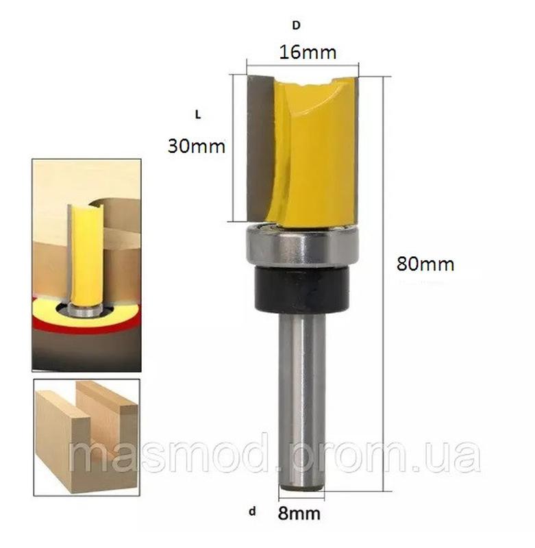 Фреза крайкова пряма з підшипником d16 d8 l30