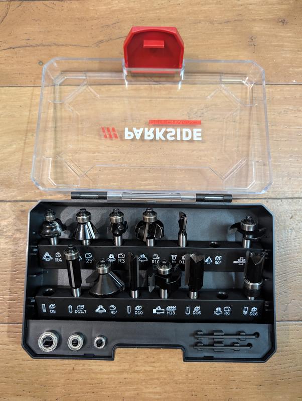 Вся комплектация на фото. Не полный комплект, виден на фото. Фрезы с твердосплавными наконечниками. Характеристики: Для точной обработки мягких пород древесины, ДСП и МДФ плит Для общего применения, такого как фрезерование, закругление кромок, пазировка и рез под прямым углом 15 фрезерных насадок с долговечными твердосплавными наконечниками, 9 из которых имеют копировальное кольцо в шариковом подшипнике В комплекте 2 шестигранных ключа (2,0 / 2,5 мм) Совместим со всеми фрезерами PARKSIDE и обычными фрезерами с 8-миллиметровым держателем инструмента В практичной коробке для хранения По сравнению с набором фрез PARKSIDE: На 300% выше точность На 80% дольше срока службы На 30% более быстрая фрезеровка