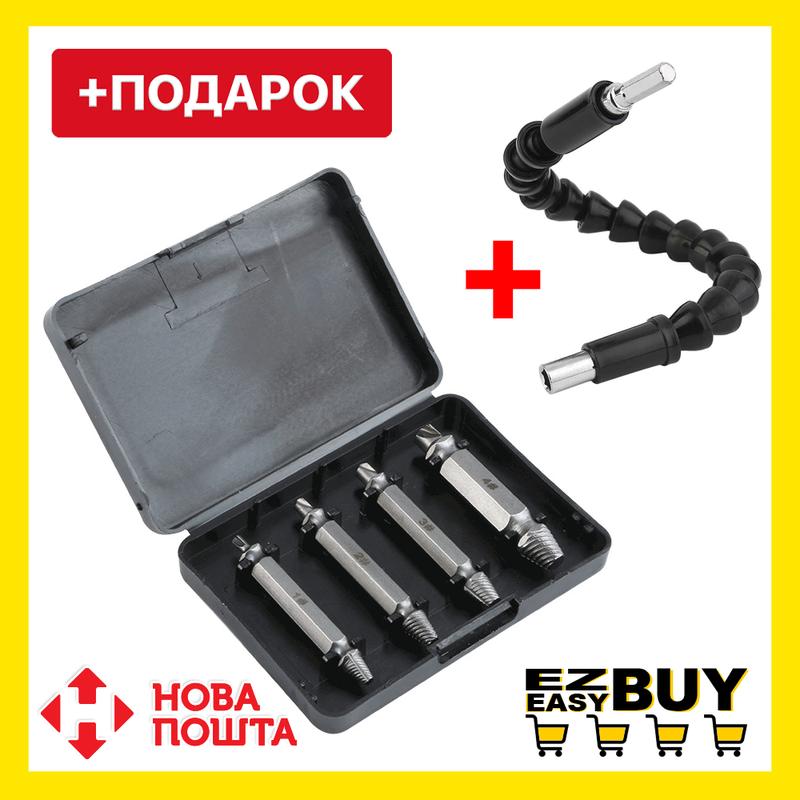 Набір екстракторів easy out в коробці + гнучкий перехідник для шуруповерта у подарунок!