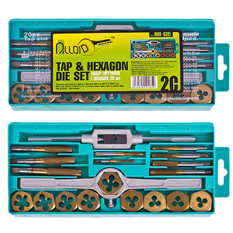 Набір мітчиків та плашок alloid 20 предметів для ремонту різьблення з інструментальної ста...