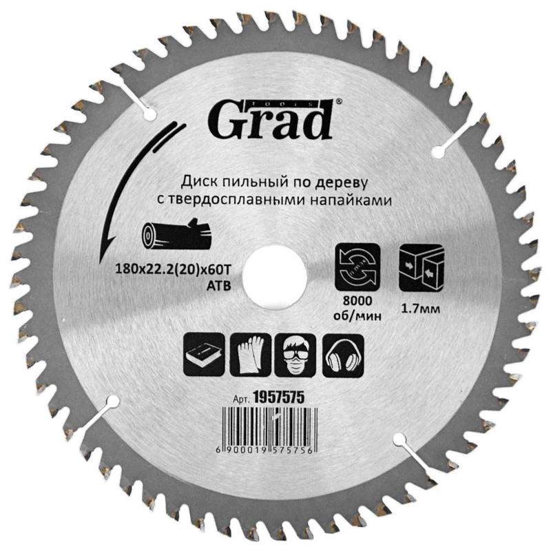 ## Диск пильний по дереву з твердосплавними зубами для різання деревини та МДФ 180х22.2 60Т 8000 об/хв DM-11 Пильний диск по дереву з твердосплавними напайками Ø180х22.2(20)х60Т, 8000об/хв Grad (1957575) призначений для виконання будь-яких стандартних робіт по дереву, різання виробів з м'якої та твердої деревини, фанери, ДСП, ДВП, МДФ та комбінованих матеріалів на основі дерева. Додатковою перевагою є можливість заміни та заточування зуба. Особливості: - Розміри узгоджені з посадковими та зовнішніми діаметрами всіх найбільш поширених типів електроінструменту; - Забезпечують поздовжнє та поперечне розпилювання; - Сучасна автоматизована технологія виготовлення; - Змінні зуби із твердого сплаву форми АТВ; - Оптимальна продуктивність завдяки міцно припаяним твердосплавним зубам; - Можливість багаторазового переточування інструмента; - Застосовують для побутового та професійного використання; - Забезпечують стабільну роботу за економічною ціною. Купити диск пильний Grad Ви можете, оформивши замовлення у нашому інтернет- магазині за допомогою простої форми, доставка здійснюється по всій Україні. Якщо у Вас виникли запитання, Ви можете зателефонувати за вказаними номерами або замовити зворотній дзвінок. Спеціалісти нашого інтернет-магазину нададуть Вам детальні консультації та допоможуть зробити правильний вибір. Назва Од.Вим. Значення Артикул1957575 Максимальна товщина різу, мм*************:00:00 Діаметр диска, мм180 Діаметр отвору, мм22.**********:00 Максимальна кількість оборотів, об/хв8000 Кількість зубів, шт60 Форма напаюванняATB Товщина диска, мм*************:00:00 Мінімальна партія замовлення, шт1 Офіційна гарантіяВід виробника КомплектаціяПолістирольний захист зубів, перехідне кільце 20 мм Встигніть замовити, кількість штук за акцією обмежена! Остерігайтеся підробок і низькоякісного товару, його зараз дуже багато представлено під видом opигiнaлy! Ми пропонуємо найвищу добротну якість товару на ринку України, який виконує свою функцію та від якого ви отримуватиме тільки приємні емоції. Чому купують саме у нас? Відгуки та рекомендації реальних клієнтів Наш магазин має численні позитивні відгуки від задоволених клієнтів. Ви можете ознайомитися з їхнім досвідом і рекомендаціями в описі нижче та на нашому сайті, що допоможе вам зробити обґрунтований вибір. Прозорість і чесність Ми ведемо відкриту і чесну політику у відносинах з клієнтами і завжди йдемо на зустріч. Усі характеристики товарів, умови гарантії та обміну чітко вказані на нашому сайті, що дозволяє уникнути непорозумінь та забезпечує довіру клієнтів. Легка система повернення товарів Ми розуміємо, що іноді товар може не підійти Вам по тим чи іншим причинам. Тому ми пропонуємо гнучку та прозору систему повернення товарів, що забезпечує вам спокій і впевненість у вашій покупці. Високий рівень обслуговування клієнтів, 10 років досвіду Наші фахівці завжди готові надати професійну консультацію та допомогу у виборі товару. Ми цінуємо кожного клієнта і прагнемо зробити процес покупки максимально комфортним і приємним. Швидка доставка та зручні умови оплати Ми пропонуємо швидку та надійну доставку по всій країні, а також різноманітні способи оплати, включаючи готівковий і безготівковий розрахунок. Наші клієнти можуть обрати найзручніший для себе спосіб отримання товару. ✅ Весь товар перевіряється на наявність браку п