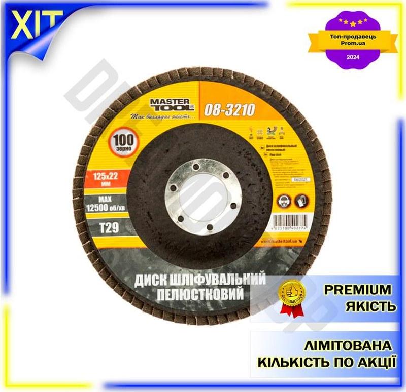 Dm круг пелюстковий mastertool специфікація 2.2 125 мм р100 шліфувальний для кутової шліфу...