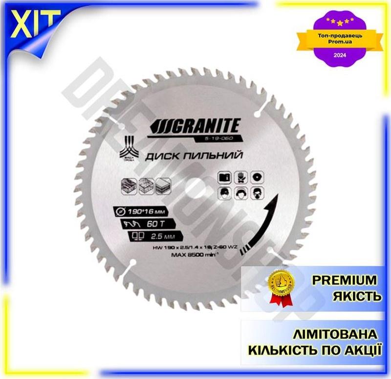 Dm диск пильний granite специфікація 2.2 190 мм 60 зубів для обробки деревини твердосплавн...