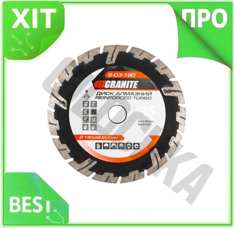 Ve диск алмазный granite 180 new version мм турбо усиленный для резки бетона и камня с сам...